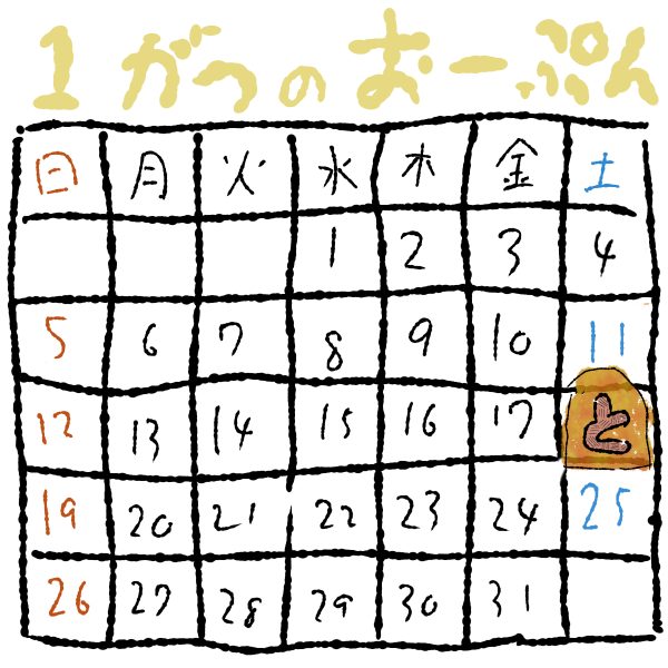 1月4日の土曜日は、お休みとなります。